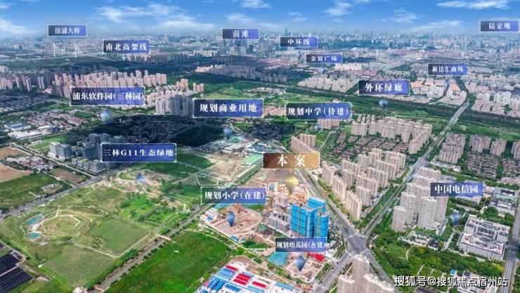 项目西侧紧邻 G11生态公园绿带(在建中), 将城市“绿肺”变成私家后院,步行约5分钟可达 城市级别的生态配套, 400M外环绿带、湿地花园区、鸣湖共享区、社邻园艺区、林荫跃动区等。
