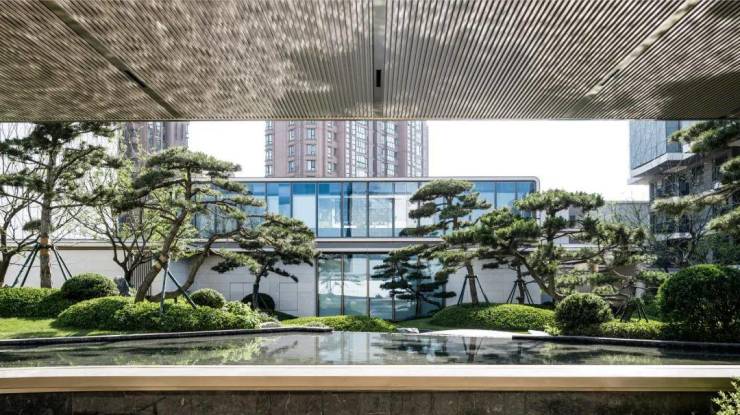 项目建筑外立面采用 部分铝板线条+大面积玻璃栏板,营造出一方高颜、高格调且历久弥新的美学住区。