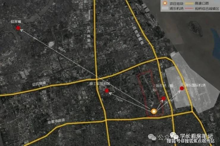 「森兰海天名筑」基地位于祝桥城镇区,虽然距离上海市区较远,但紧邻浦东国际机场与上海东站新址,距迪士尼度假区直线距离仅有10km左右。在城市规划层面属于祝桥生态居住区核心位置,宏观上四周有临空产业片区,上海东站,生态保育片区,度假休闲片区,规划前景不可限量。
