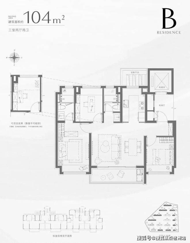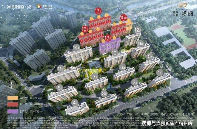 【招商中旅·揽阅】共计规划17栋12-14F小高层,首开楼栋位于整个项目的北侧,共3种户型,分别为建面约96㎡三房两卫、建面约104㎡三房两卫、建面约135㎡四房两卫。3种户型提供了全生命周期成长空间的方案。