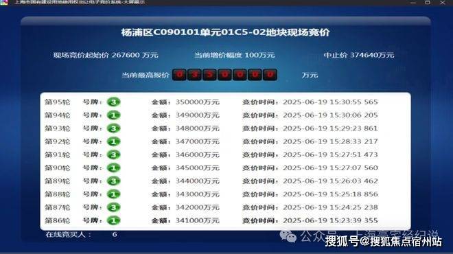 6月19日,保利发展经过95轮竞价摘得杨浦东外滩地块,成交总价350000万元,楼板价95530元/㎡,溢价率30.79%。