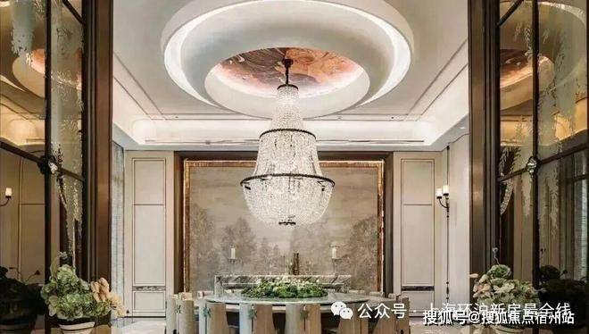 在景观落地窗环绕中,私宴厅以“花廊序列,美学对景”构筑专属的私谧空间,巨型水晶吊灯与浅色饰面的搭配,色彩质感上相得益彰,营造融合艺术、文化与生活美学的奢享感场域,成就令人神往的优雅社交范式。