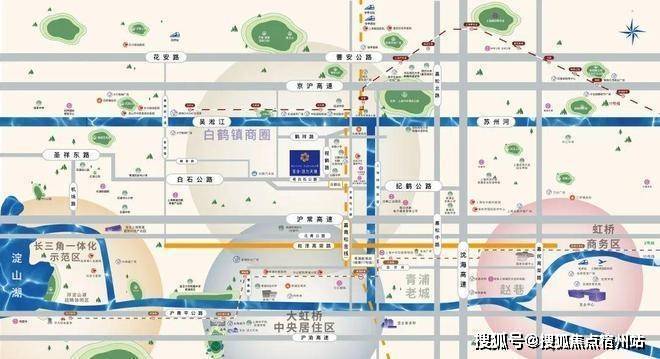 交通配套: 市域铁路:未来市域铁路嘉青松金线,将贯穿嘉定、青浦、松江和金山,届时白鹤将与青浦新城直接连通,并换乘轨交17号线和沪苏嘉城际线。双维交通:坐享轨交11号线与轨交17号线青浦“纵贯线”交通辐射,坐享长三角节点交通优势。