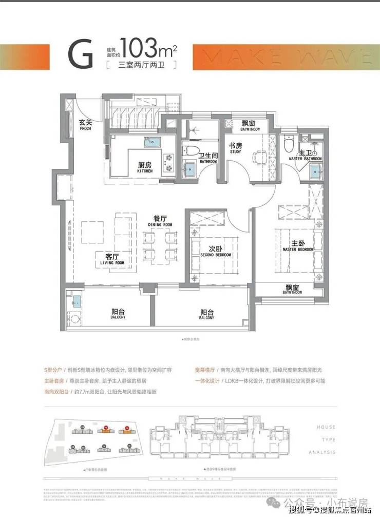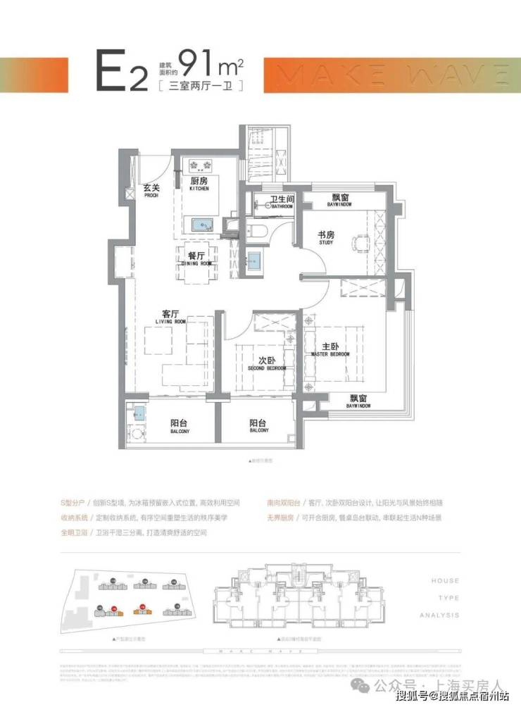 “南向双阳台+南北双飘窗”,构筑真3房户型!