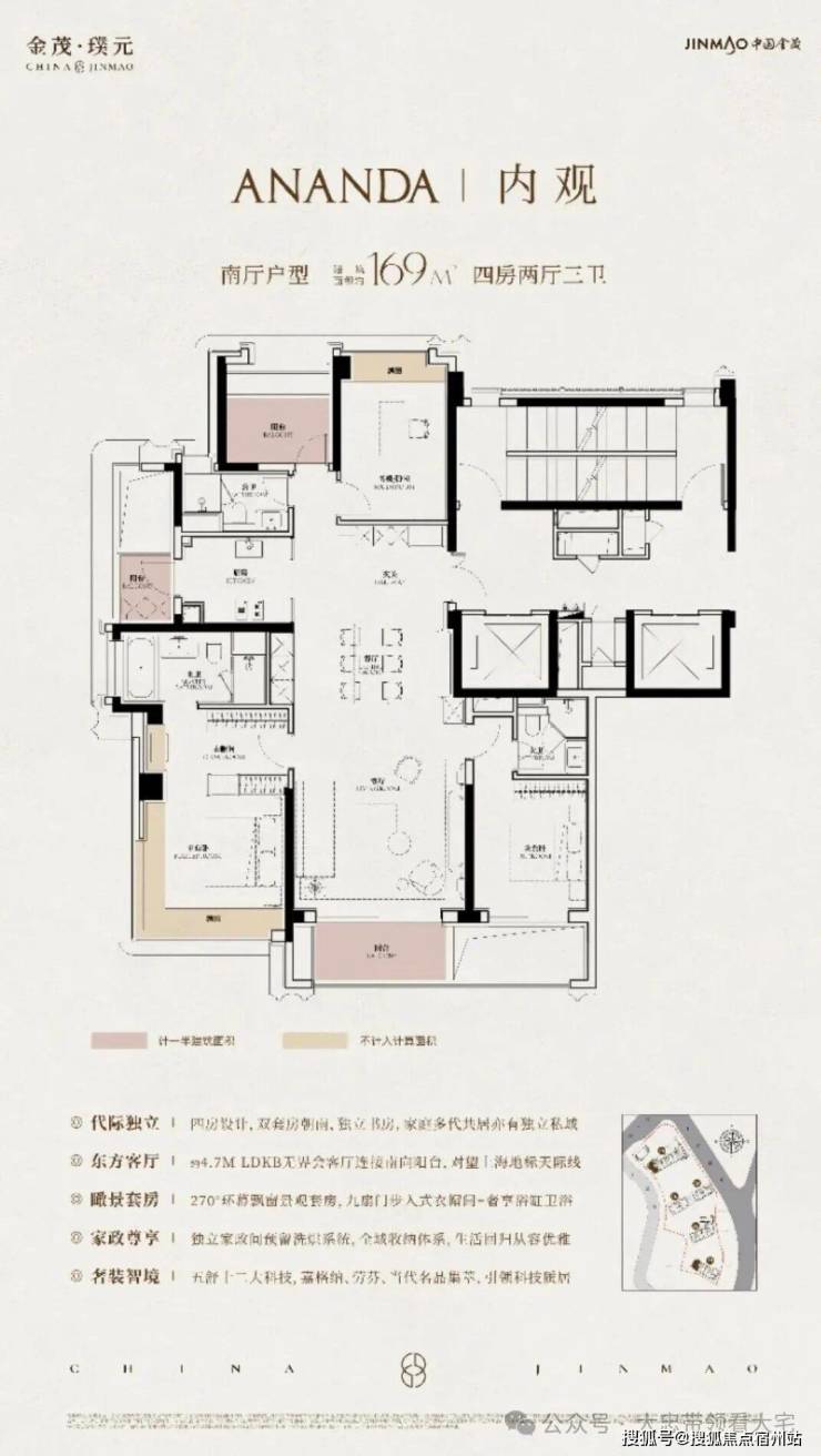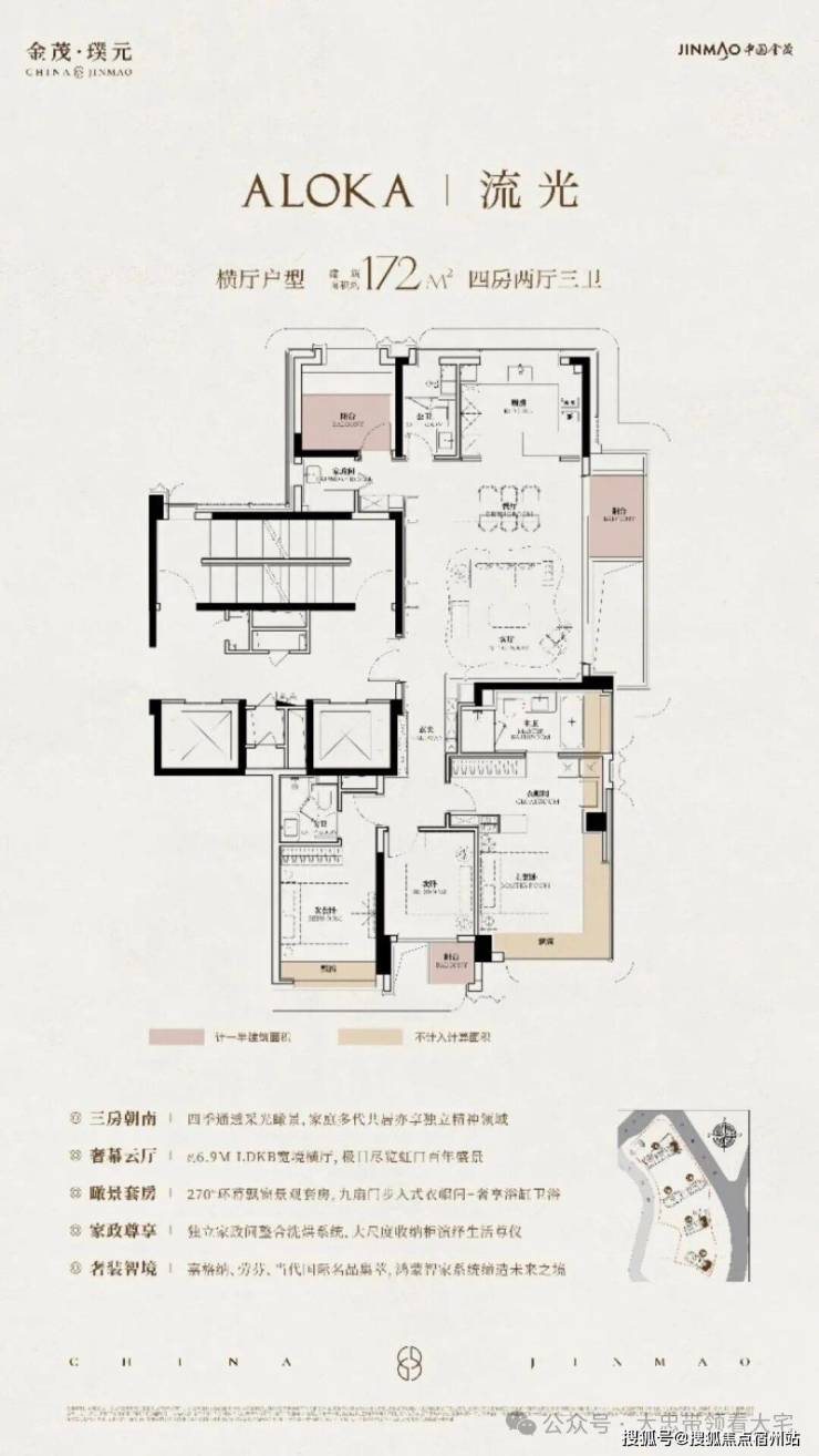 在建面约172㎡户型中,我们可以看到金茂对“三代同堂 ”生活方式的深刻理解!