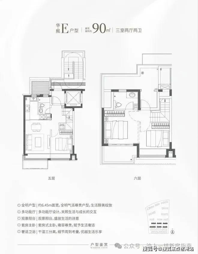 华发还有目前松江比较稀缺的叠加房源,分为六层叠加和四层叠加。主力户型建面约90-133㎡,特别是这个E户型,建面仅约90㎡,对于想住叠加但预算有限的购房者来说,面宽约6.45米,上下动静分离带,是个不错的选择!