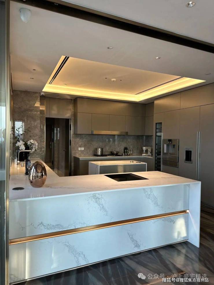 比如采用奢石静雅棕石、雪山银狐石、月光白石、挪威木纹石等石材;