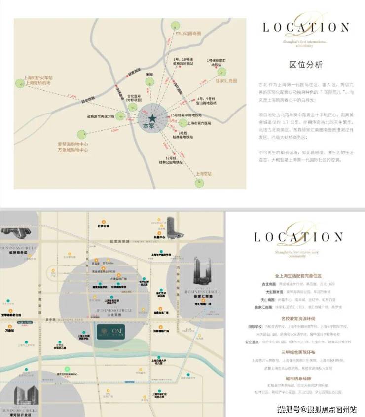 项目地处闵行长宁交界的古北板块,项目依托虹桥交通枢纽和长宁徐汇商圈,交通便利配套成熟,是上海第一个大型高标准的国际豪宅社区。