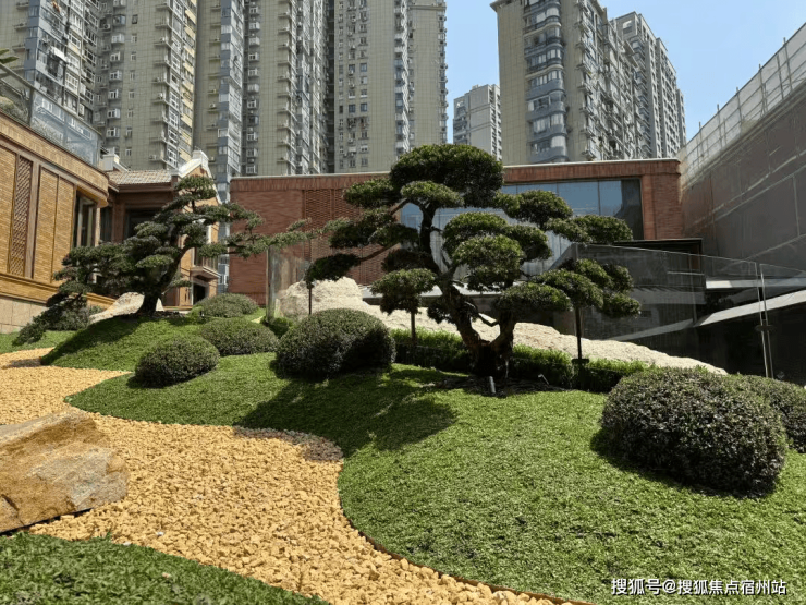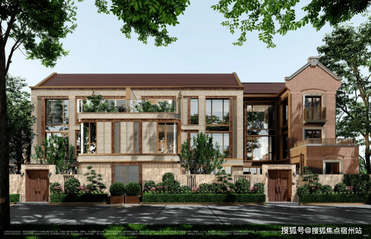 在立面用材上,项目独具匠心。不同于普通的涂料或石材,越秀·外滩樾选用了经过 1200度高温煅烧的红色陶面砖与金色釉面砖 。这种材质不仅密度高、吸水率极低,能历经百年风雨而不朽,更拥有温润如玉的视觉质感。结合斜砌、梅花丁、弧形镂空等数十种复杂砌筑工艺,阳光下的建筑立面呈现出流动的光影效果,厚重而典雅-3-4。