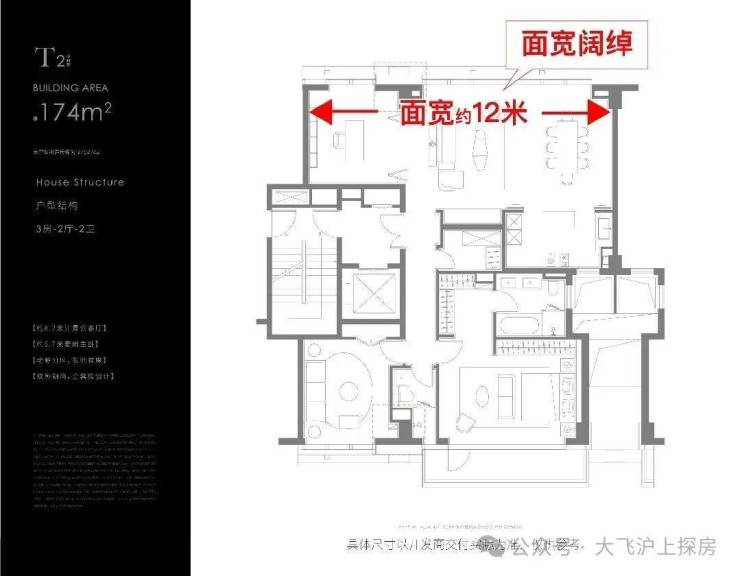 ⑥ 174m²客厅8.2米/奢侈三房/主卧开间5.7米/最小卧室约14m²