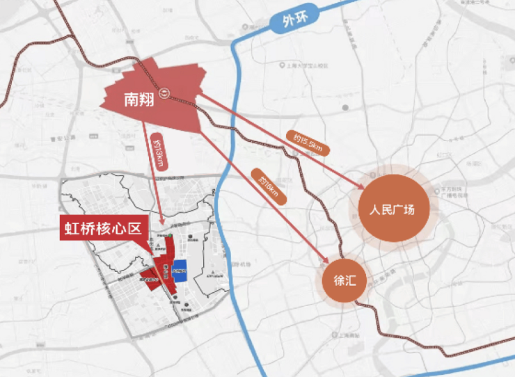 除了背靠市区这颗大树之外,南翔还位于国家级战略发展重心的大虹桥板块。
