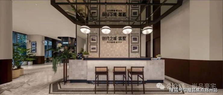 约200平左右的归家大堂做了书吧、落客区、咖啡吧,颇有现代摩登风格的感觉。