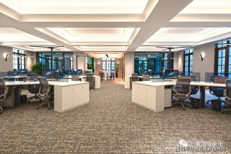 标准层:绿植墙明亮且有设计感的办公风格、沿窗总监办公室、大小会议室