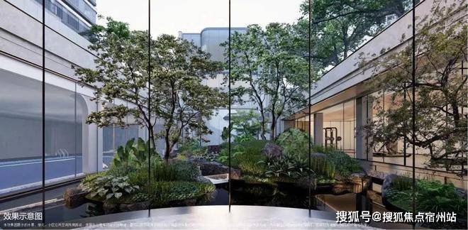 4、下沉式庭院,通过乌桕树、溪流构建一处安静的栖息之境✅✅招商臻境售楼处电话:400 - 8824 - 258✅✅,业主可在这里尽情放空。