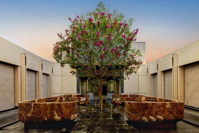 比如,整个下沉式庭院材料选用土耳其进口老虎玉,由匠人耗时60天手工打磨定制,可见海上·清和玺对业主归家仪式感设计的用心与苛求。