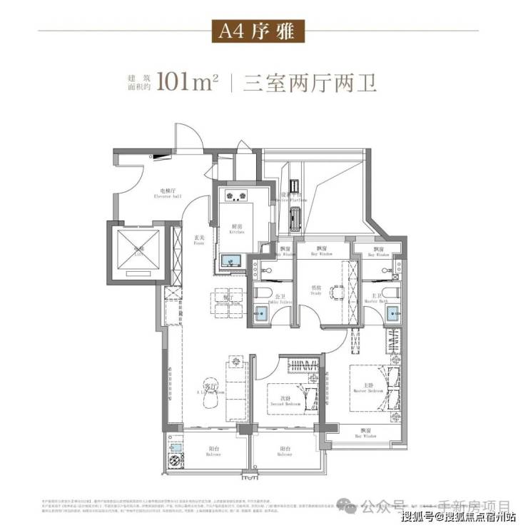 序雅-A4-建筑面积约100㎡三室两厅两卫