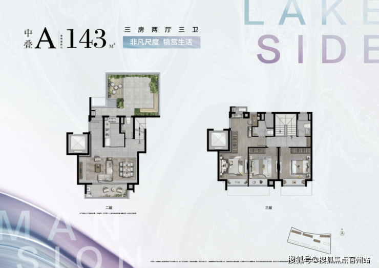 建面约143㎡中叠A户型图