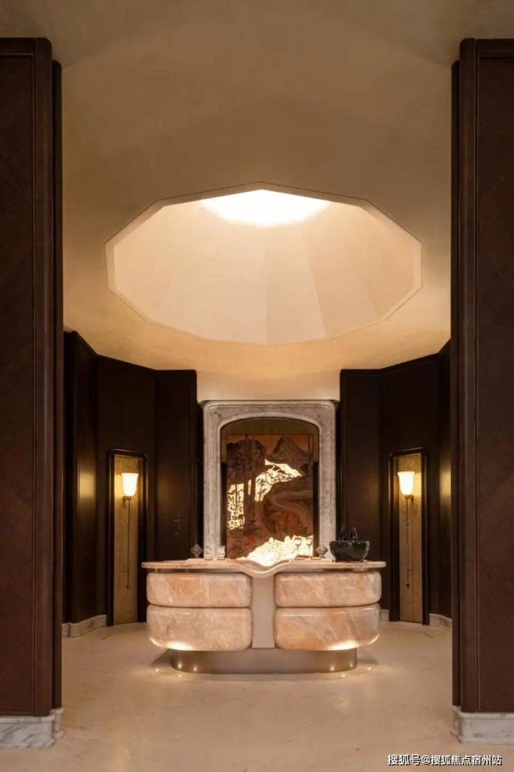 出于同源康定壹拾玖的审美,壹江臻邸延续了“揉石成缎”的核心匠艺,月光米黄石材门头历经十余道工序精磨,将织物般的温润肌理化作归家第一重礼遇;更以瑰丽酒店同源的严苛标准,打造家族专属门牌徽章,静默宣告其恢弘身份。