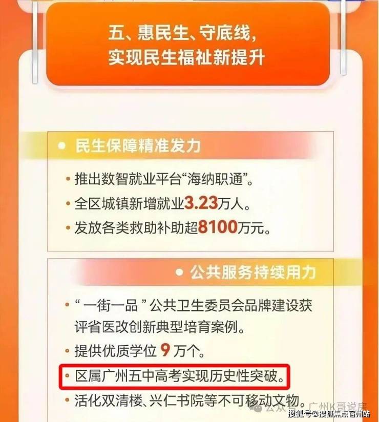 1个月前出炉的《2025海珠区政府工作报告》,就特别赞扬了“ 广州五中高考实现历史性突破 ”!