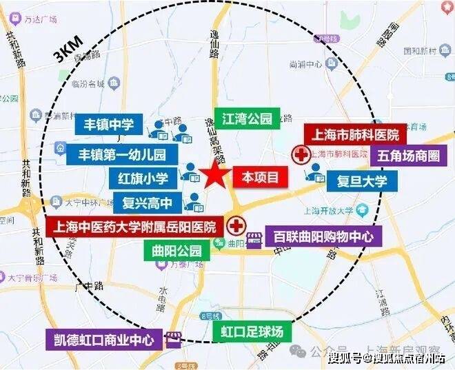 医疗方面,上海中医药大学附属岳阳中西医结合医院(三甲)距离项目直线约1.5公里;同济大学附属上海市第四人民医院(二甲)距离项目直线约1.6公里。