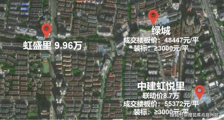此外,同样是不低于3000元/平的装标,仅仅是楼板价就要低于中建虹悦里。