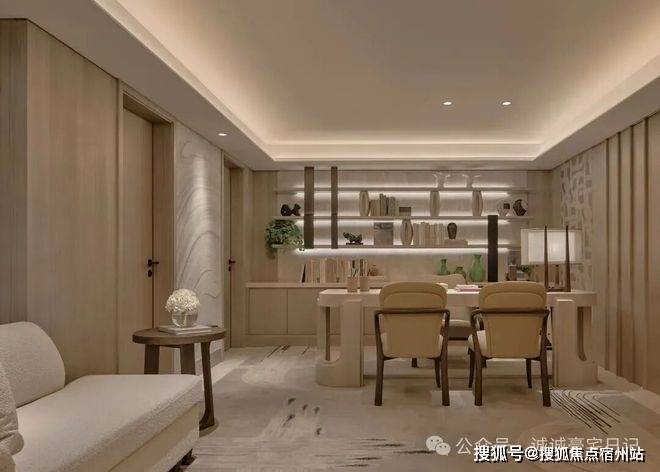主厅核心区悬浮式定制柜体,银箔与丝绸在几何切割中构建中式基因,毕加索石材的天然裂变肌理成为天然艺术装置。✅✅士林润园售楼处电话:400 - 882 - 4258✅✅瀑布吊灯以流体力学演绎东方留白,让光影在岩板表面生长出动态水墨意境。