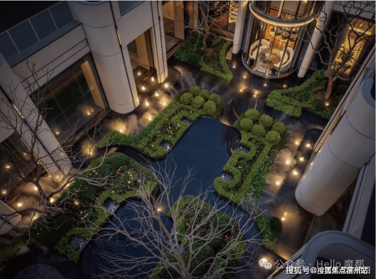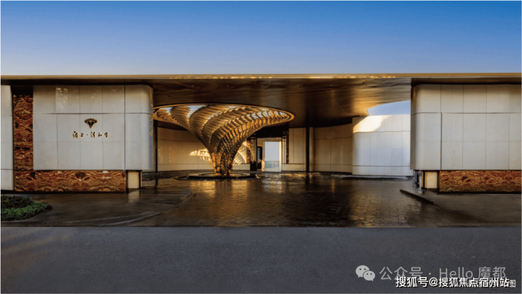 8、不仅是金钱上的奢侈,更是时间广度的奢侈。 比如,整个下沉式庭院材料选用 土耳其进口老虎玉 , 由匠人耗时60天手工打磨定制 ,可见海上·清和玺对业主归家仪式感设计的用心与苛求。海派光厅之外的归家迎宾树木更是由设计师 辗转多个城市才寻到的、树龄超60年的福木“紫薇” 。