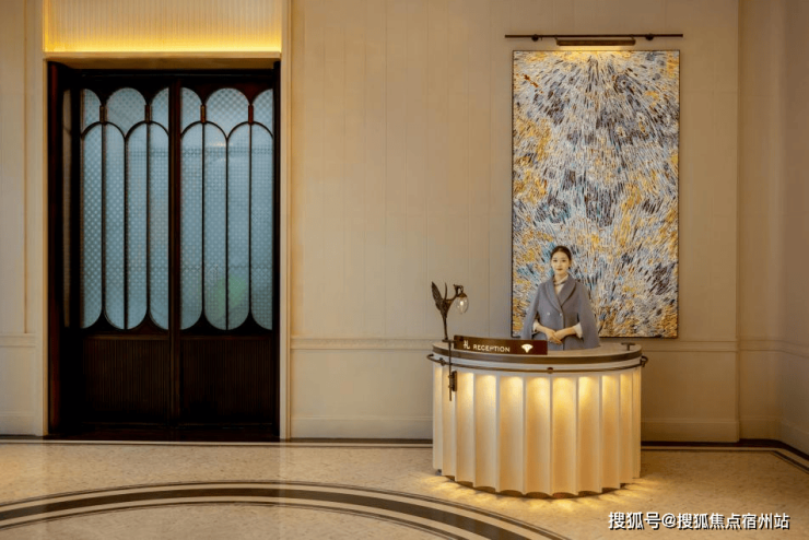 预接待厅地面瓷砖采用 威尼斯白 与 爵士白石材拼花 设计,纯人工铺装保证花纹的奢华质感。甚至壁面装饰的水晶灯,都选用高规格的E9级进口水晶制作。