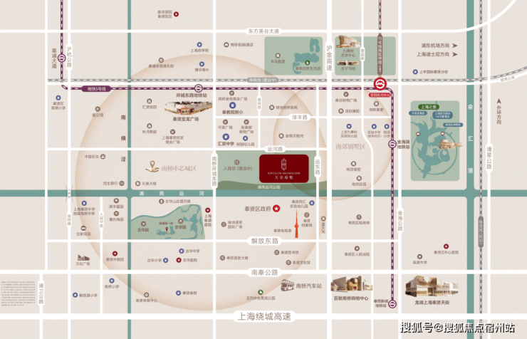 该地块位于南桥核心地段,南侧紧邻浦南运河休闲步道,北侧有S4高速出入口,紧邻地铁5号线环城东路站,1站至望园路站还可换乘15号线(南延伸段在建),进站直达紫竹高新园区和莘庄城市副中心,北侧还有市域 南枫线 (在建)环城西路站,周边三轨交环绕。