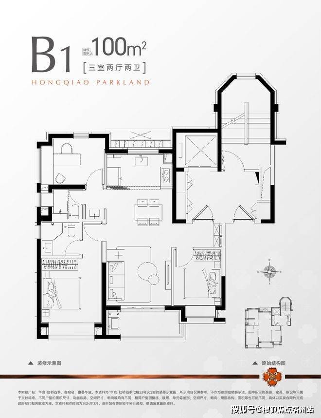 建面约100㎡三室两厅两卫的户型更适合成长型家庭。三开间朝南,LDK一体化以及双明卫的设计,造就全明户型,尽享阳光生活。玄关鞋柜精灵、美妆冰箱等人性化细节,处处尽显匠心诚意。北面次卧可做为多功能房间,书房、儿童房皆可,增加生活的延展性,满足个性化需求。
