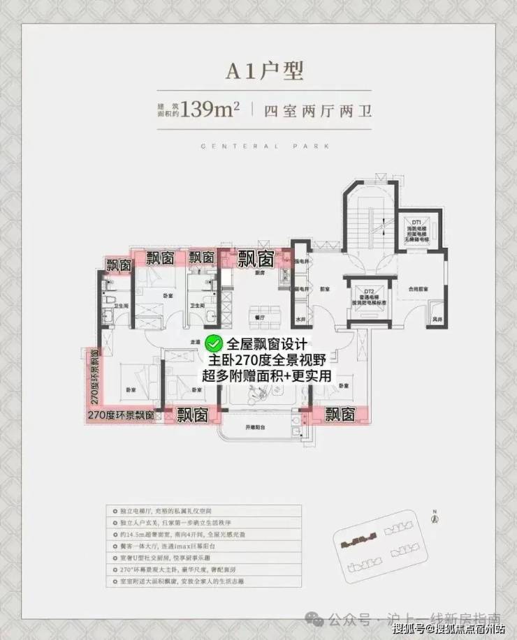 关键是,139㎡四房可直接媲美市面上166㎡的居住体验,相同的空间尺度感,却能省下约30㎡的资金成本,劲省200万左右!亮点三:全屋飘窗赠送