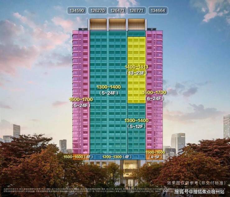 起步楼层4楼价格最低,次顶楼23楼和次次顶22楼价格一样,是最高价。