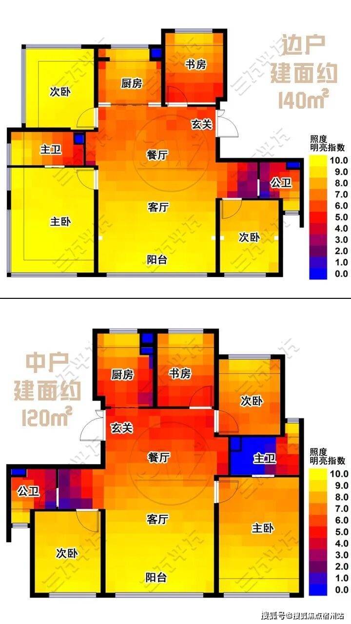 上图为两个户型的采光模拟计算, 黄色橙色代表最明亮的地方 ,所有主要房间基本上都被覆盖。
