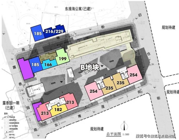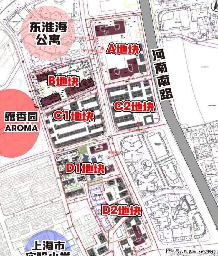 北侧圈出来的三栋高层对应的就是B地块;南侧是D1地块。