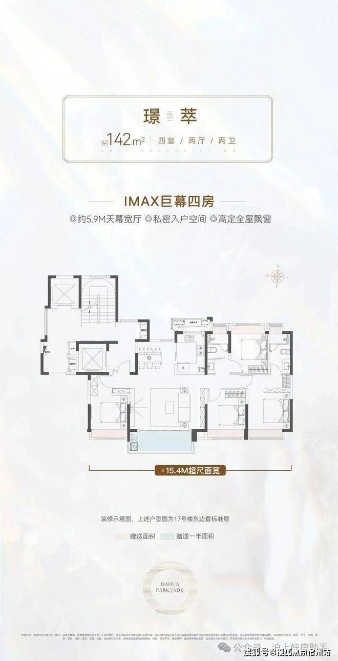 真正一步到位的改善型4房产品,大横厅的设计,四开间朝南+大横厅,约15.4米的南向面宽堪比别墅。