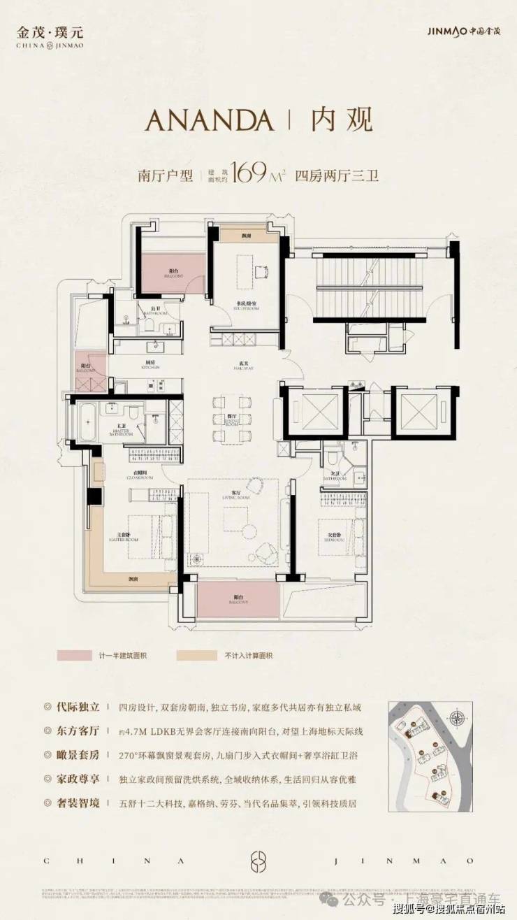 在建面约172㎡户型中,我们可以看到金茂对“三代同堂”生活方式的深刻理解!