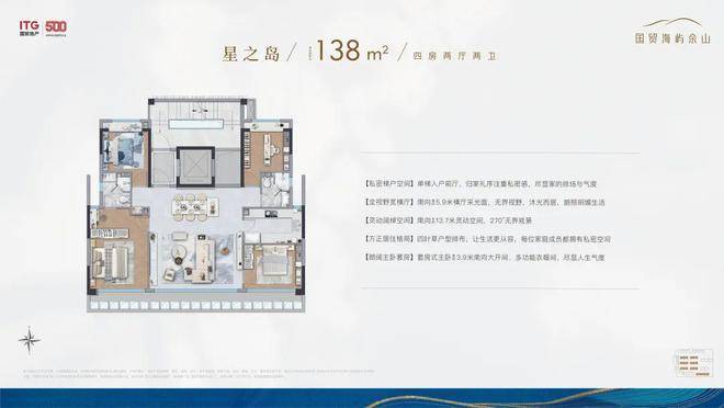建面约138㎡的4房2厅2卫,二胎家庭的进阶首选!