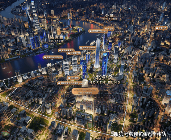 项目南侧的北外滩核心区,更是发展的重中之重。 1/5的土地上,将承载了北外滩超四成的建筑体量 。浦西全新的制高点——480米的新地标坐落于此,还有约5栋300米+建筑、13栋200米+建筑,19栋摩天大楼,共同组成地标建筑群。