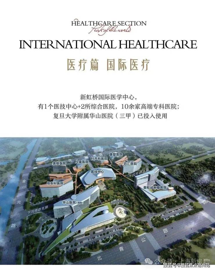 国际医学中心: 新虹桥国际医学中心,有1个医技中心+7家高端医院,共8家医院;
