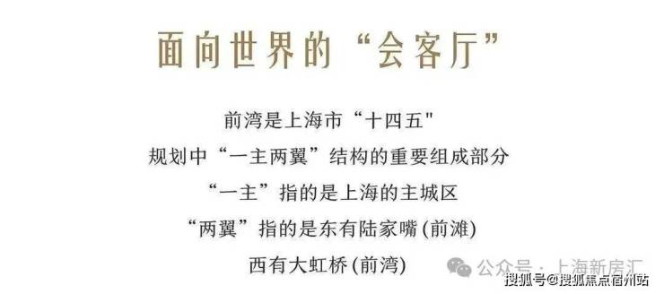 南虹桥核心前湾板块,苏州河入沪第一湾,打造成面向世界的“会客厅”,规划总面积1200万㎡,相当于4个前滩,潜力无限。
