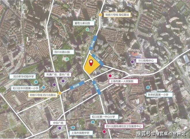 该地块位于虹口内环内的嘉兴社区,就在第一人民医院北侧,南侧约200米就是北外滩,北侧即为瑞虹新城,项目直线距10号线四川北路站约400米,是今年虹口区非常重要的一个新房供应。