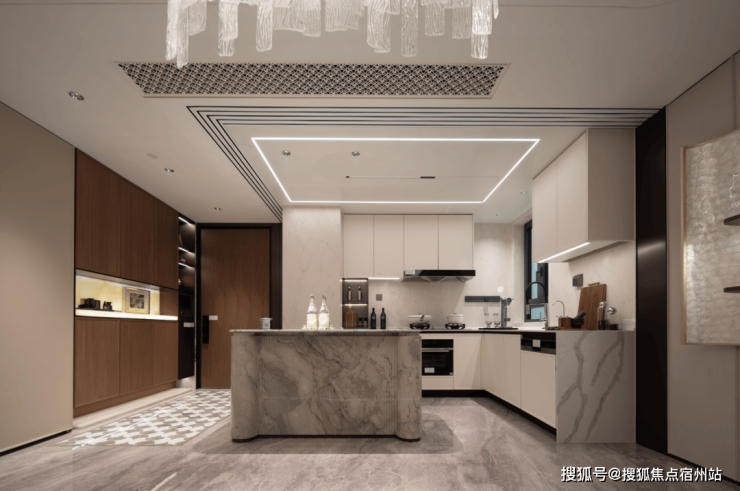 走进海上·清和玺的厨房, 墙面岩板通铺 ,视觉效果超棒。