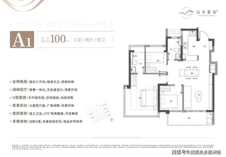 首付仅需56万起,就能在中建山水雅境买到一套 建面约100㎡3房2卫神户型。