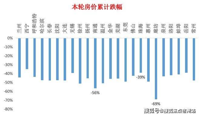 宁波跌幅 48%,宁波有个杭州湾新区板块,当年投资客聚集、泡沫较大,当前房价较历史高点估计跌幅达 60% 甚至 70%。