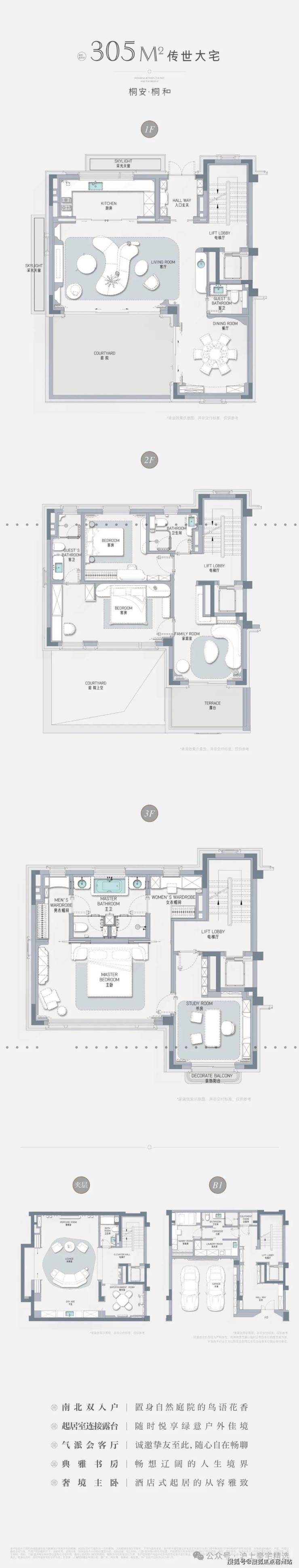 其次,相比城心大平层“一层不变”的生活,桐安里的联排别墅生活情境 更立体,更个性化,更私密,更适配大家族多代人居住。