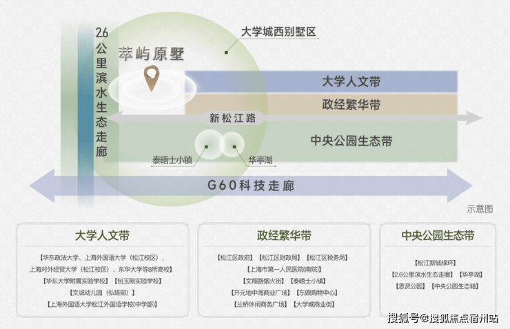 三公里辐射圈内,8所高校(含两所211)华东大学附属实验学校、包玉刚实验学校、文诚幼儿园(弘塔部)等名校环伺,坐拥政务要枢、松江首家三甲医院、繁华商圈皆精粹于此,尽纳墅居版图