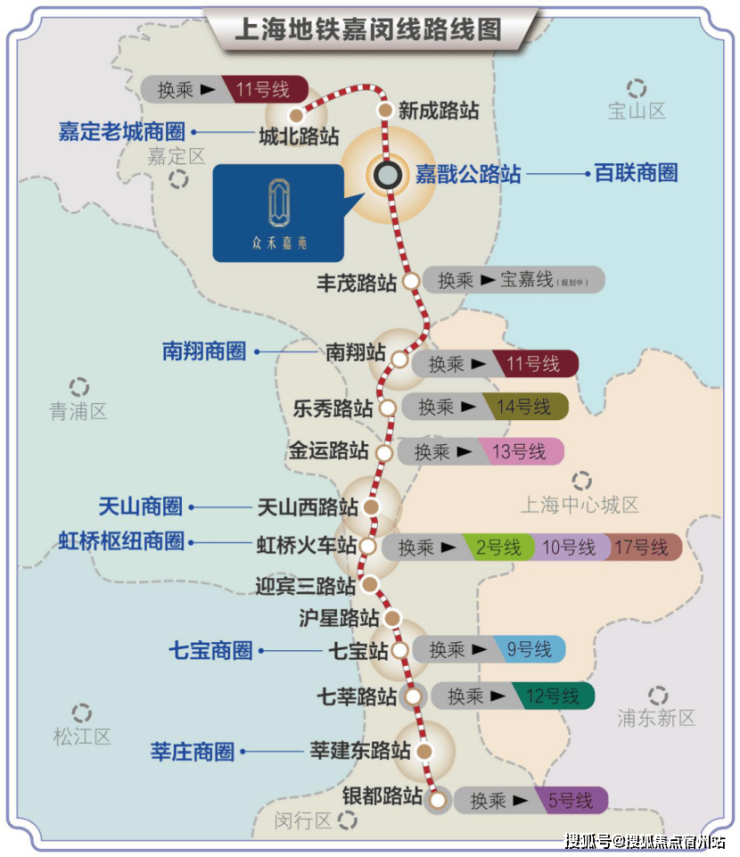 众禾嘉苑距 嘉闵线嘉戬公路站(在建中)直线距离仅约20米!