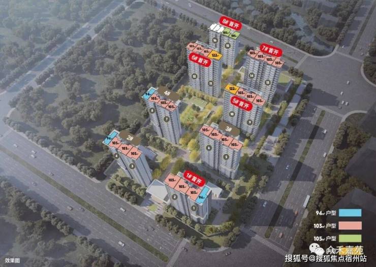 户型方面,主力产品建面约94-122㎡3-3+1房。