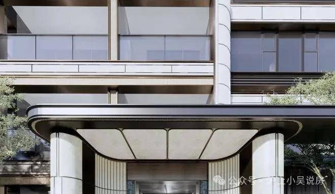在楼栋主入口同样运用 石材+弧形铝板等元素,同时还有格栅装饰,质感提升明显: 招商臻境售楼处电话:400-8894-638