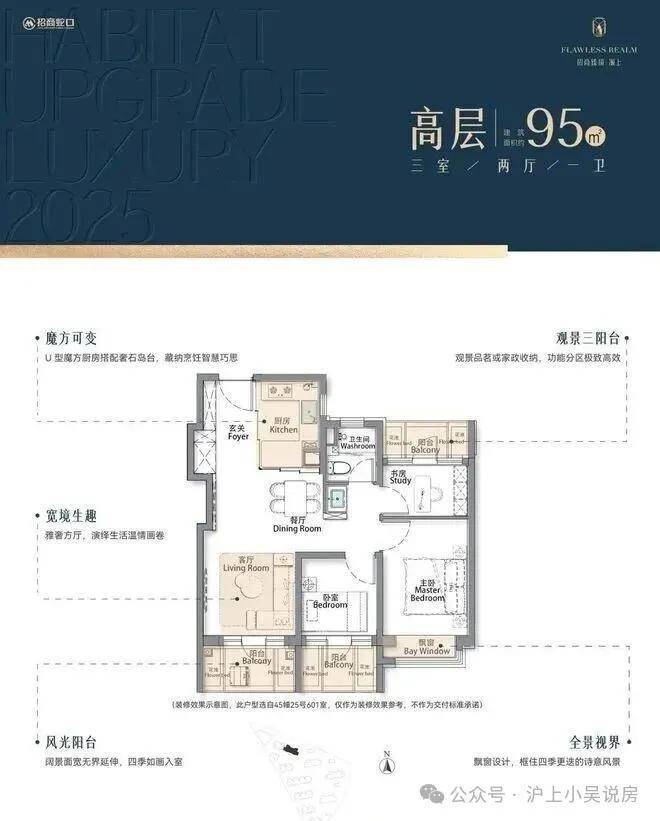 高层户型为建面约95㎡,设计方正且全明,3阳台设计,为业主提供更加舒适的居住环境。 招商臻境售楼处电话:400-8894-638